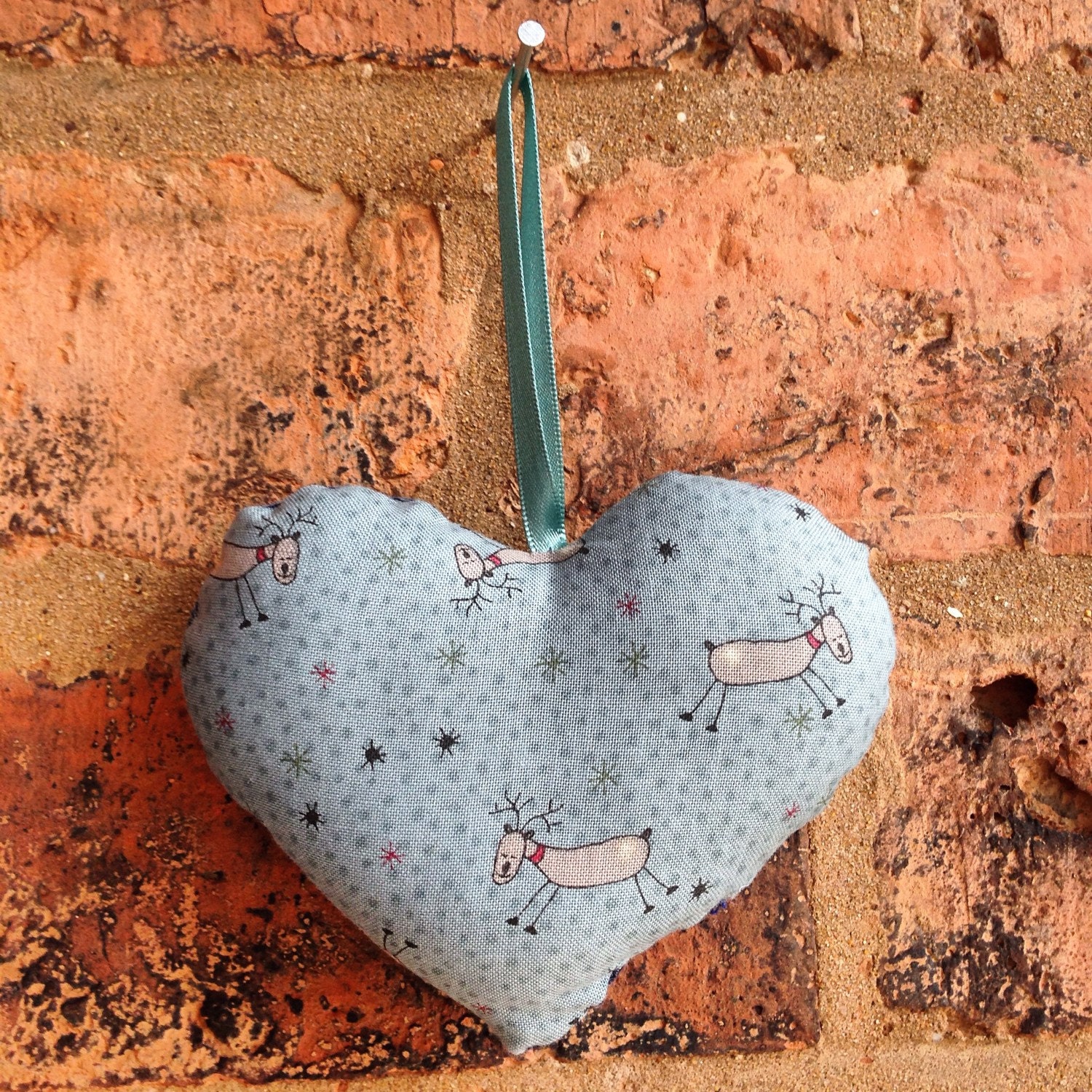 made easy by Etsy Store IndigoArtisansblue jeans, recycled denim, fun Xmas decor, indigo artisans, handmade heart, Xmas tree bauble, Christmas decoration, cute reindeer print, cute hanging heart, blue hanging heart, vintage denim heart, British made cool