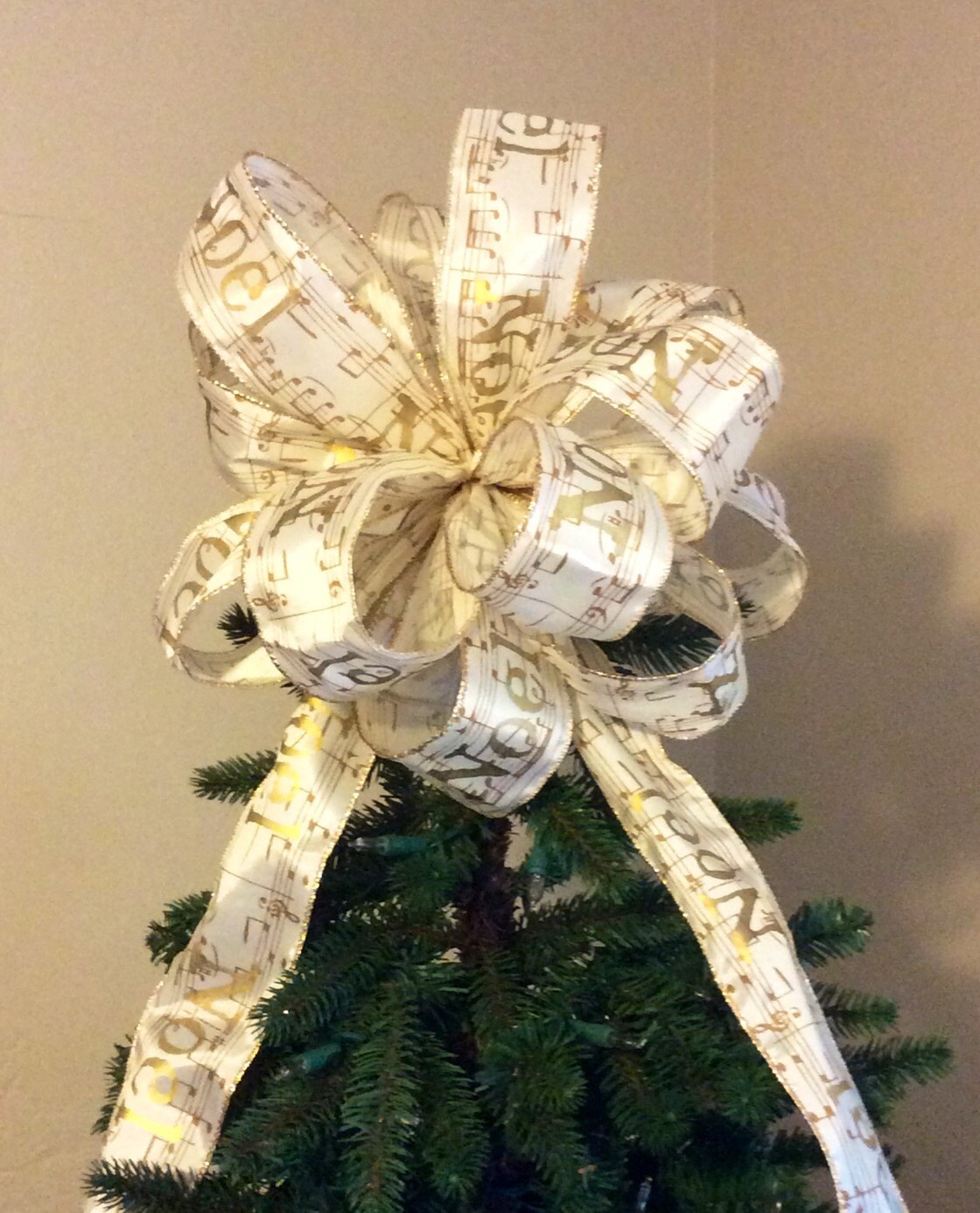 Christmas Tree Topper Bow/ Golden Noel Tree Topper Bow/ Gold Christmas Tree Topper Bow/ Gold Christmas Tree Bow/ Christmas Bow Tree Topper