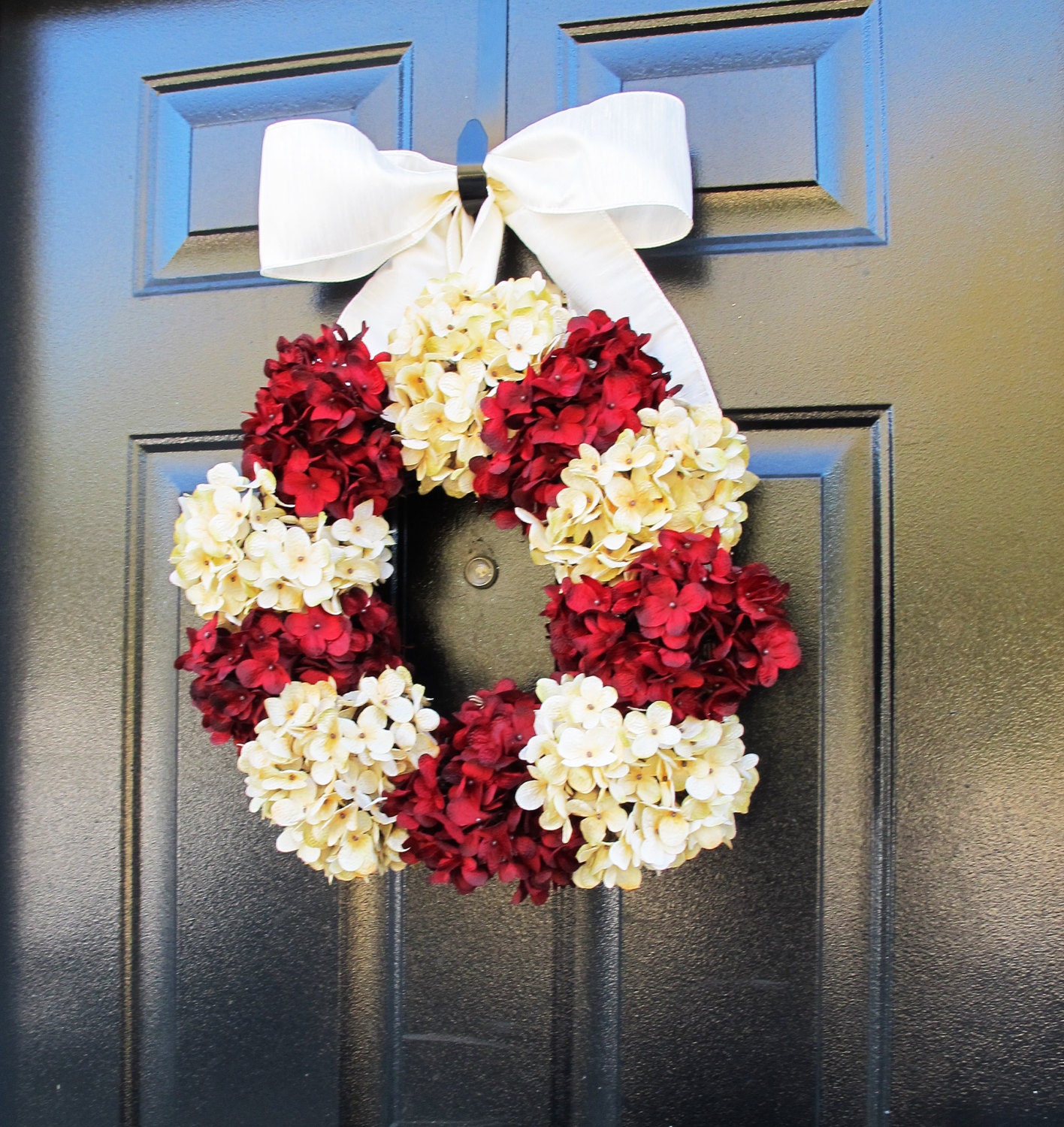 Striking Red and White Christmas Wreath For Front Door, Red and White Hydrangeas, Holiday Wreath and Home Decor