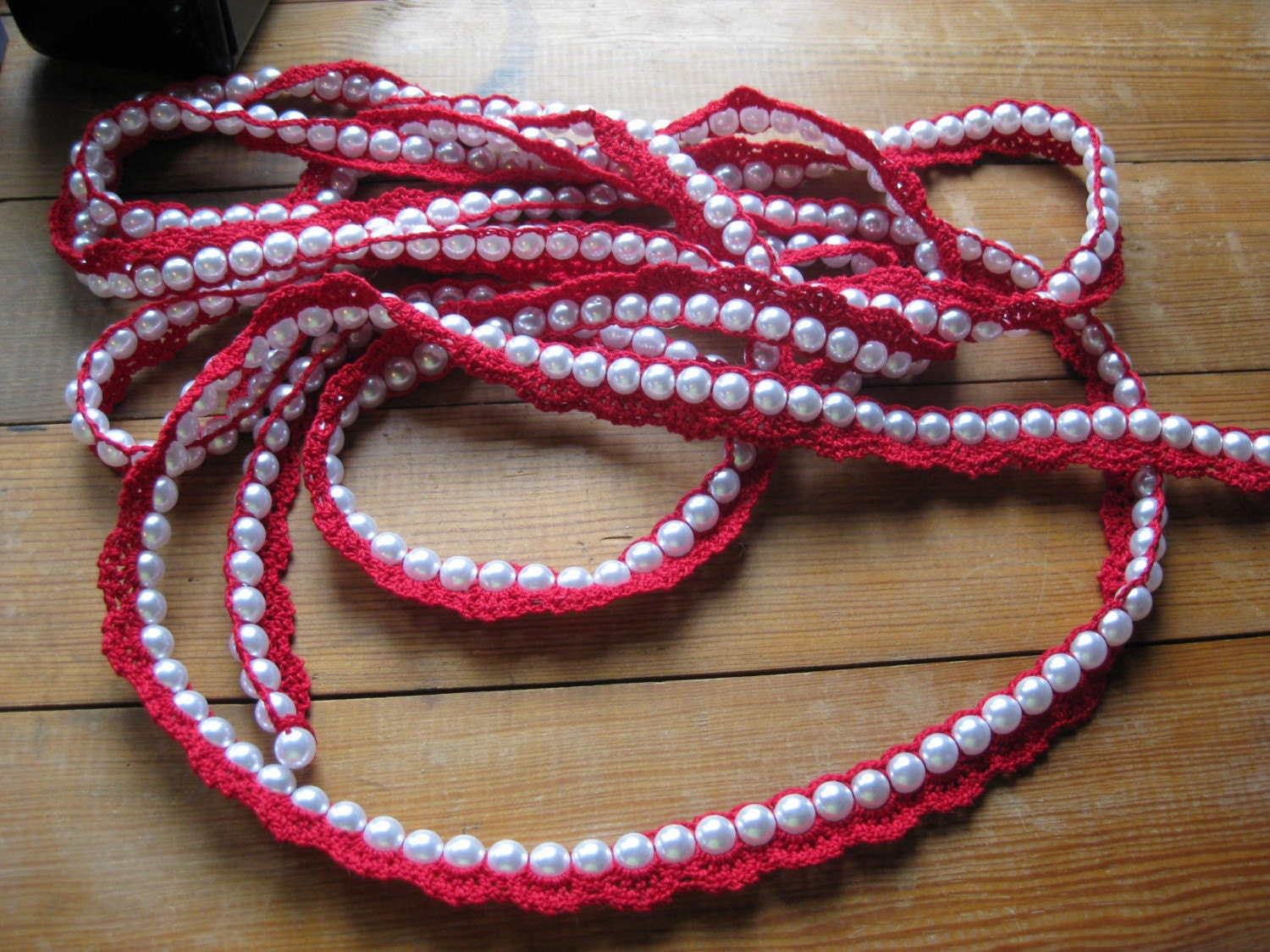 Christmas Hand Crocheted Garland with 10mm White Faux Pearls