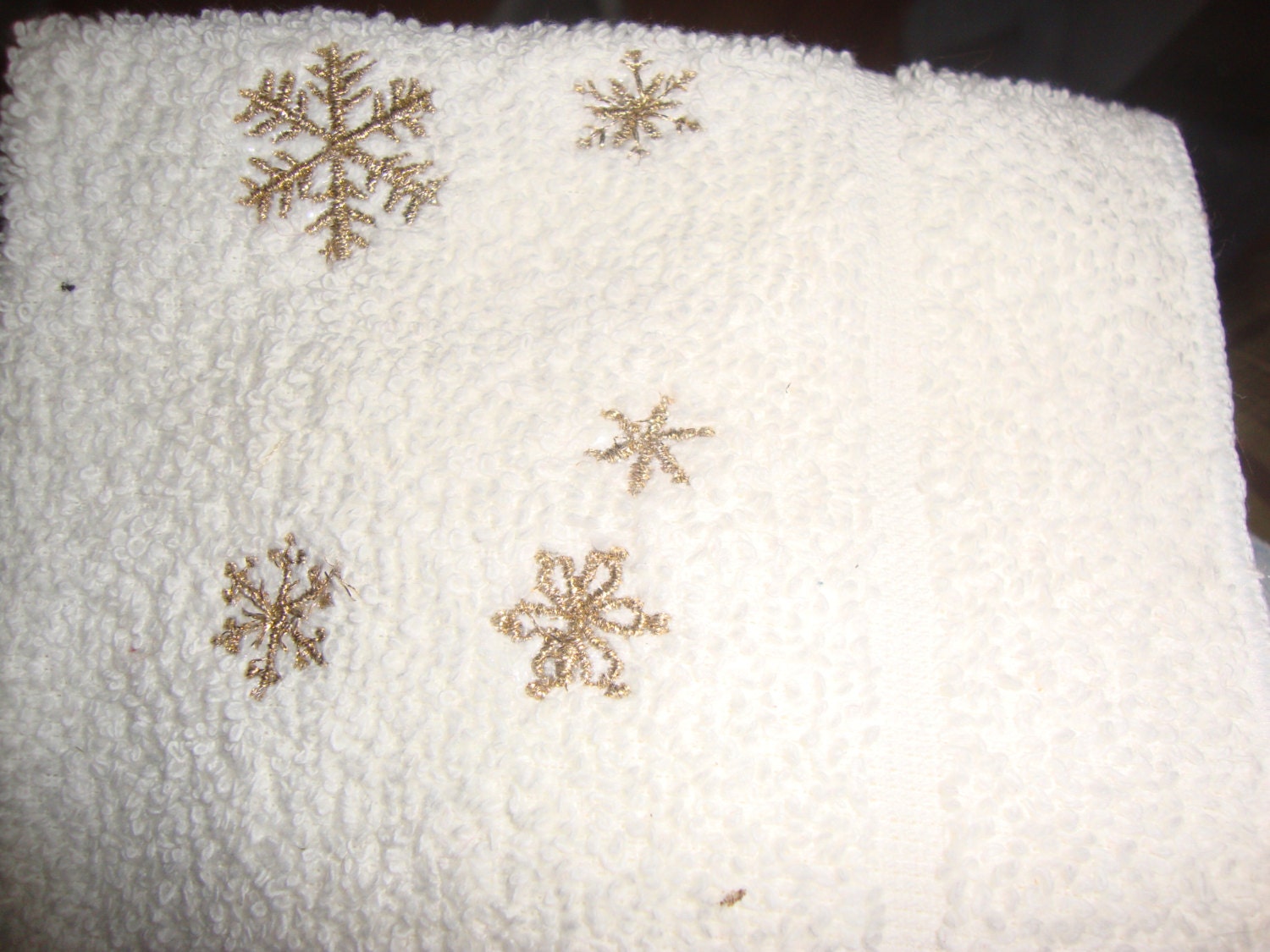 Christmas, Holiday, Decor, Washcloth, Gold, White, Bathroom, Snowflake, Embroidery, Handmade, Housewares