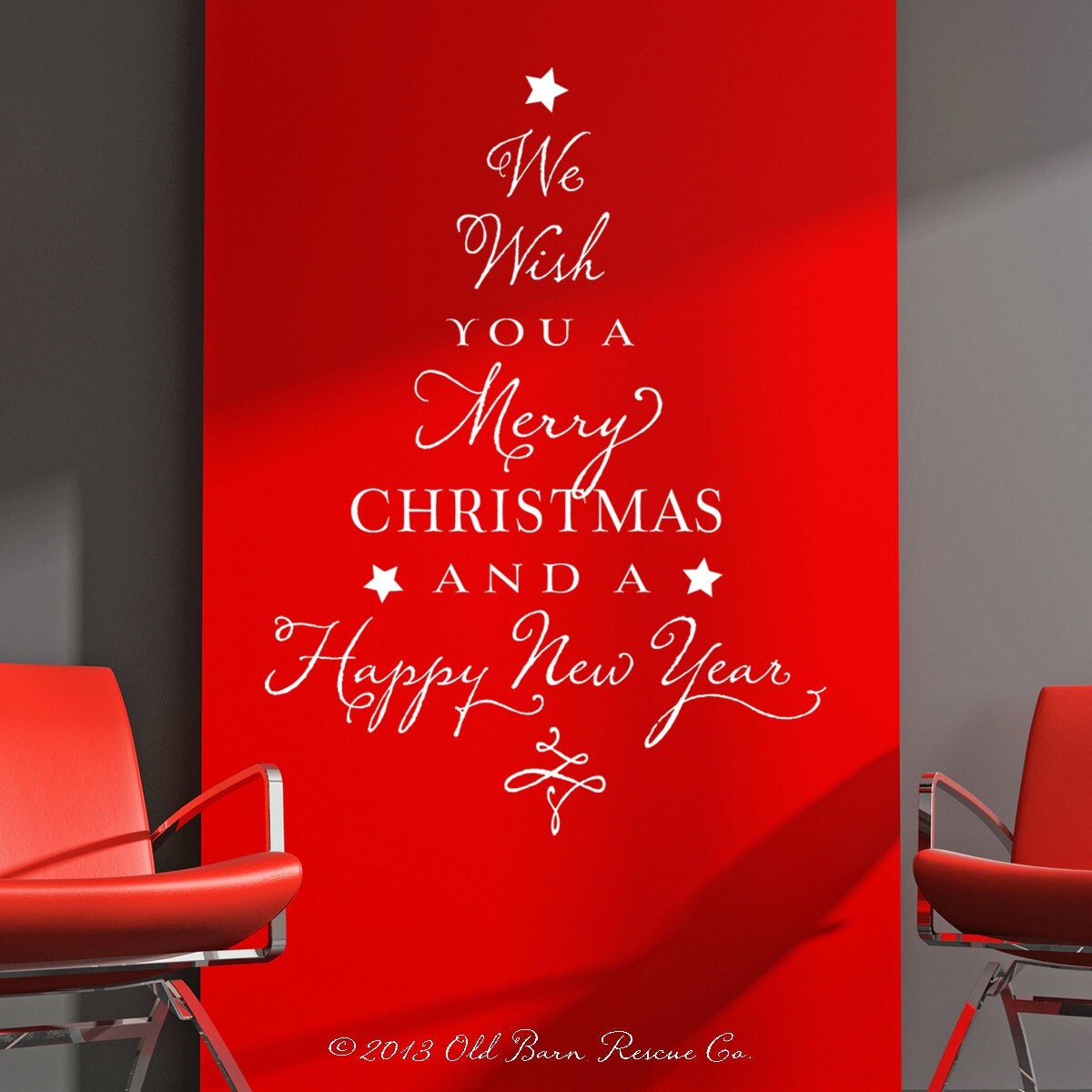 Christmas Vinyl Decal We wish you a Merry Christmas, Christmas Wall Decal, Christmas tree sticker