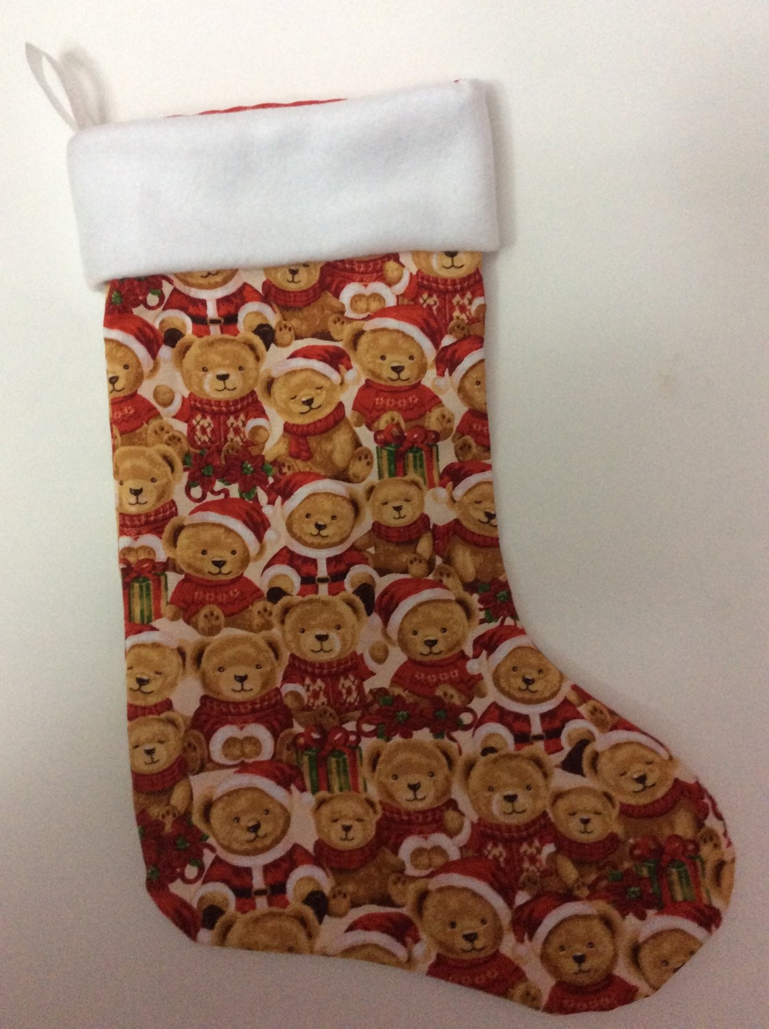 Handmade Christmas Stocking - Santa Teddy Bears. Merry Christmas. A great holiday decoration. Very cute OOAK