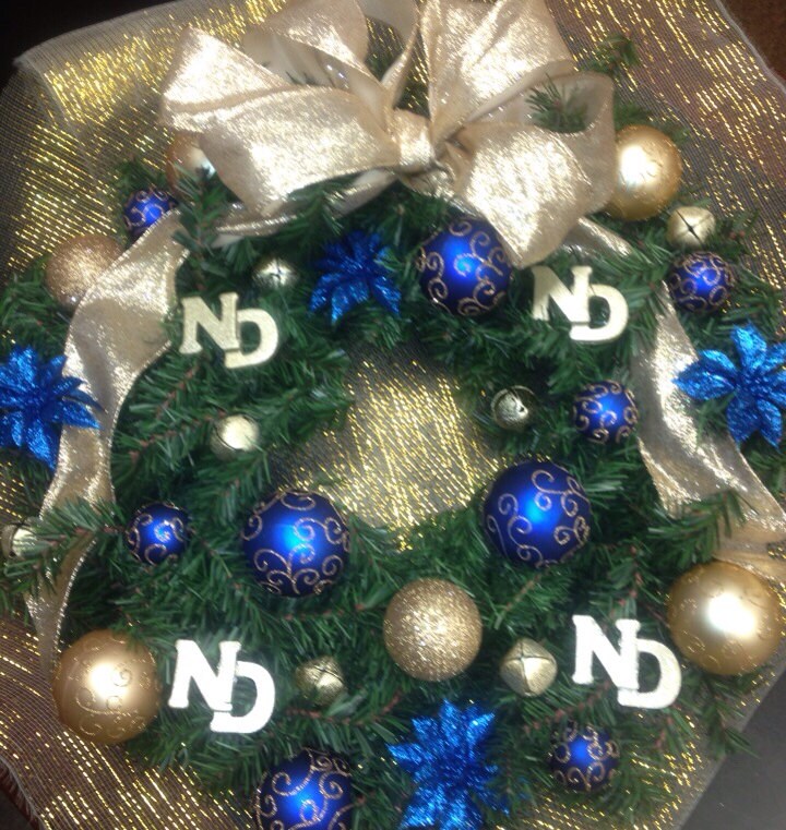 green, flowers, fighting irish, irish, blue, door decorations, gold, notre dame, Christmas, Wreath, Holidays