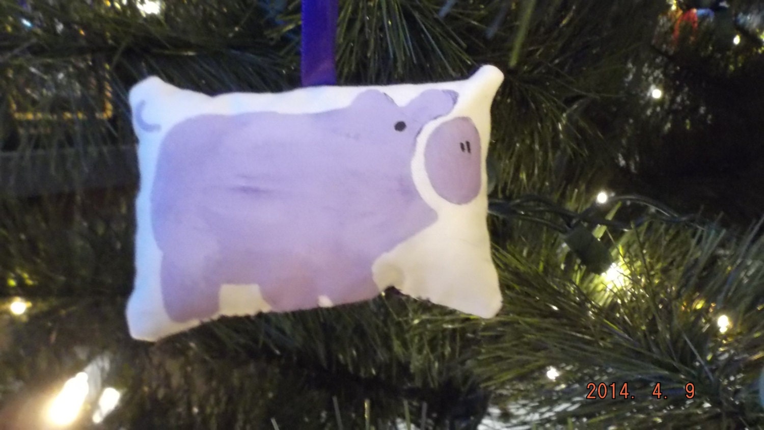 Purple Piglet Stencil Pillow Tree Ornament with Back Made of Purple Corduroy Fabric FREE SHIPPING!