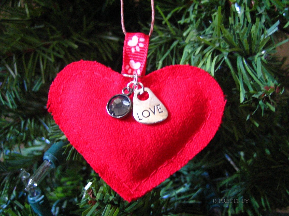 made easy by Etsy Store PrettifyGiftsPet Christmas, Pet Ornament, Paw Print Decoration, Pet Holiday Gift, Animal Lovers, Red Heart Ornament, Paw Print Ribbon, Red Fabric Heart, Handmade, Holiday Decoration, Tree Decorations, Christmas Tree
