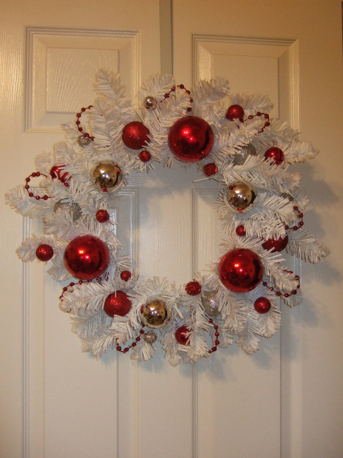 END of YEAR SALE Red White Wreath, Christmas Wreat...