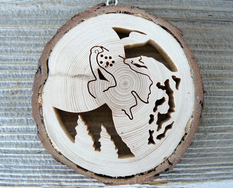 made easy by Etsy Store DJsNatureChristmas Ornament, Rustic Wood Ornament, Christmas Decoration, Rustic Decoration, Scroll Saw Ornament, Cedar Wood Ornament, Handmade Ornament, Handmade Decoration, Mini Wall Hanging, Wolf Ornament, Wolf Howlng, Howling at the Moon, Wolf Wall Art