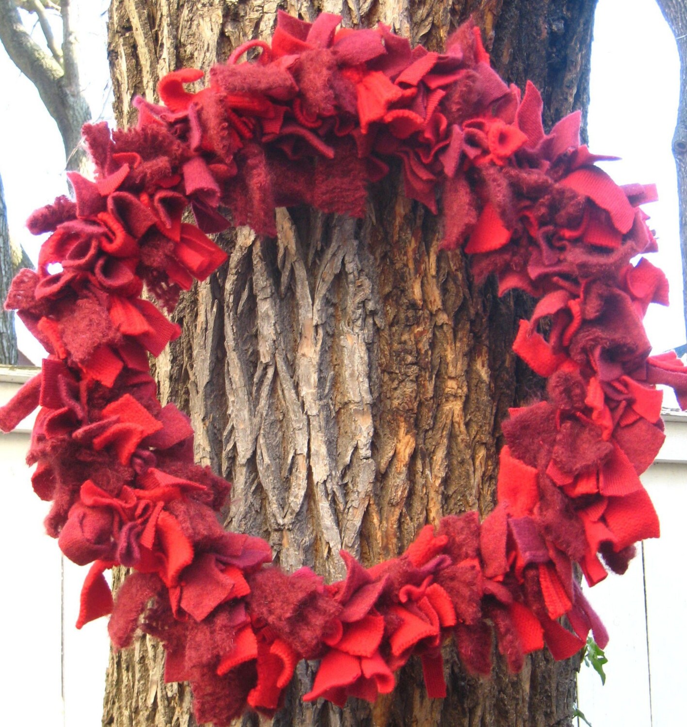 is for sale in Etsy Store raisingEllawreath, holiday, whimsical, door art, recycled, cashmere, wool, sweaters, ooak, valentine, handmade, home decor, country